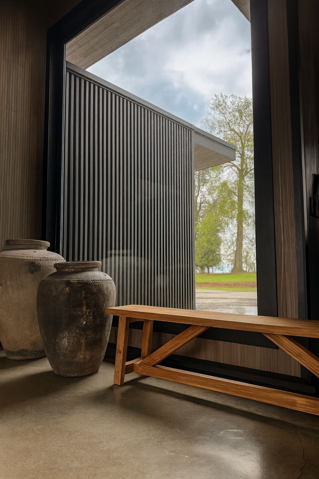 Una pieza imponente que combina la nobleza de la madera nativa con la calidez de la luz.